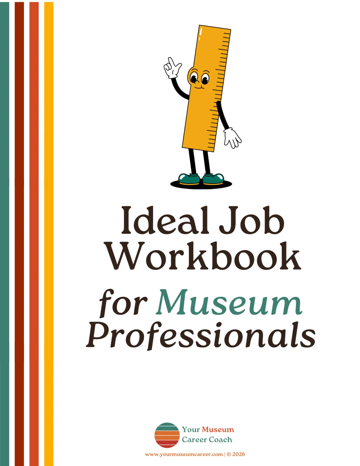 Get a FREE workbook designed for museum job seekers and professionals that helps you define your ideal job, identify non-negotiables, and align your career choices with your values and goals by signing up for my email list.